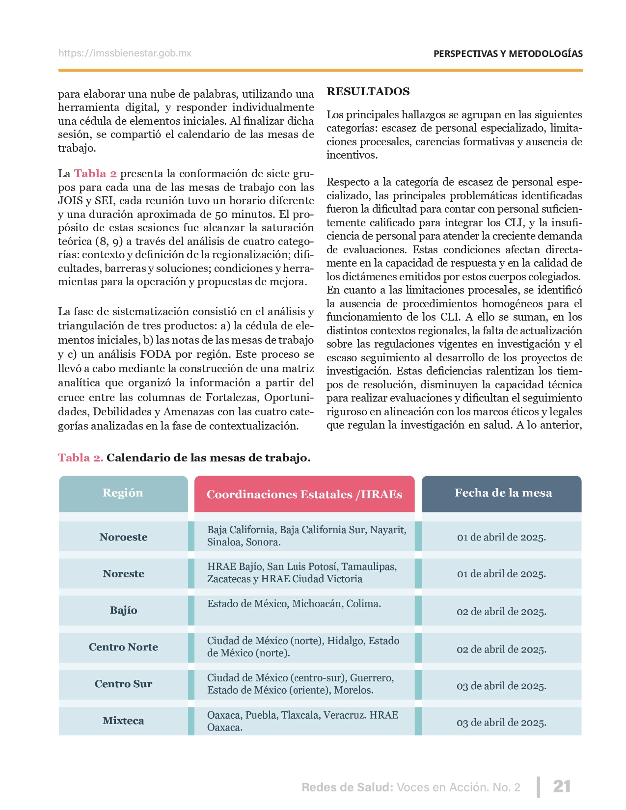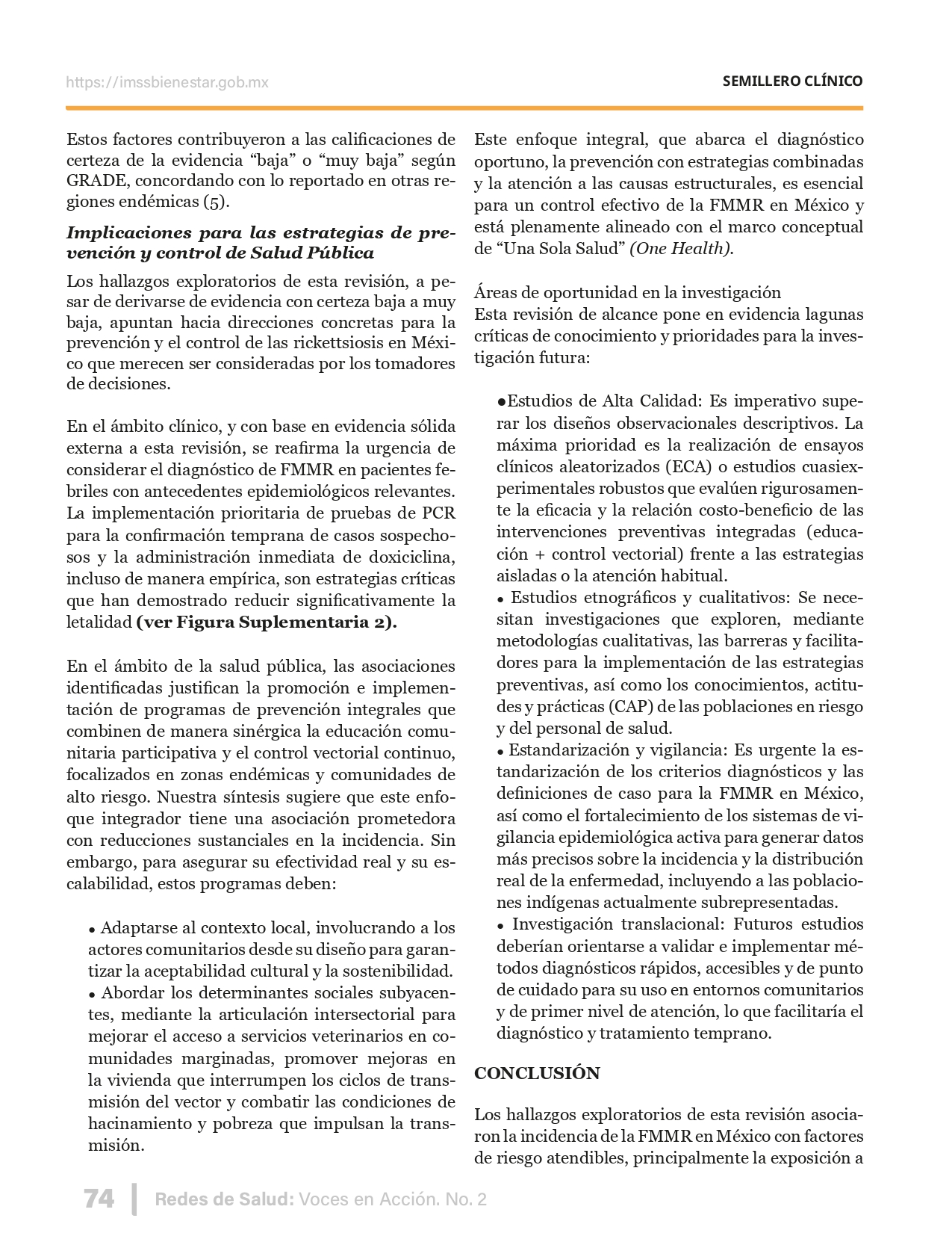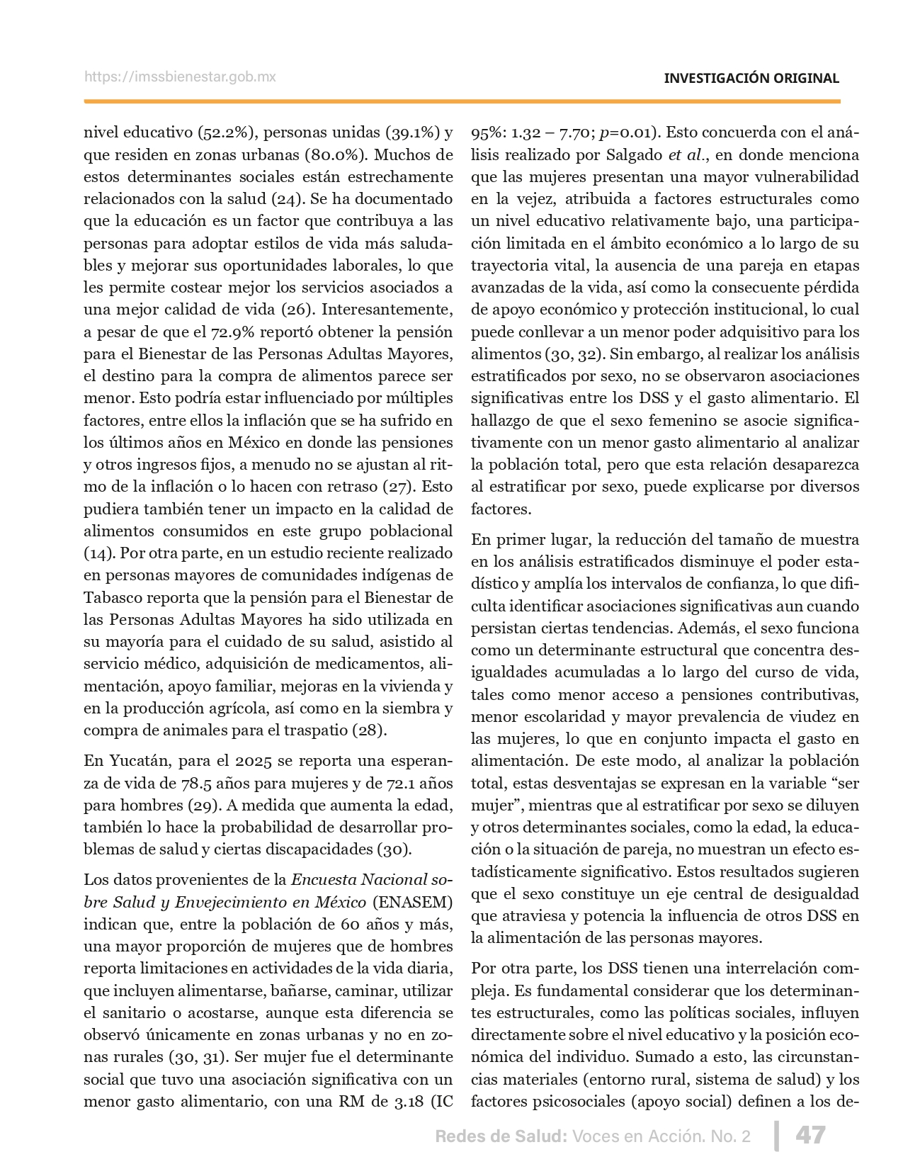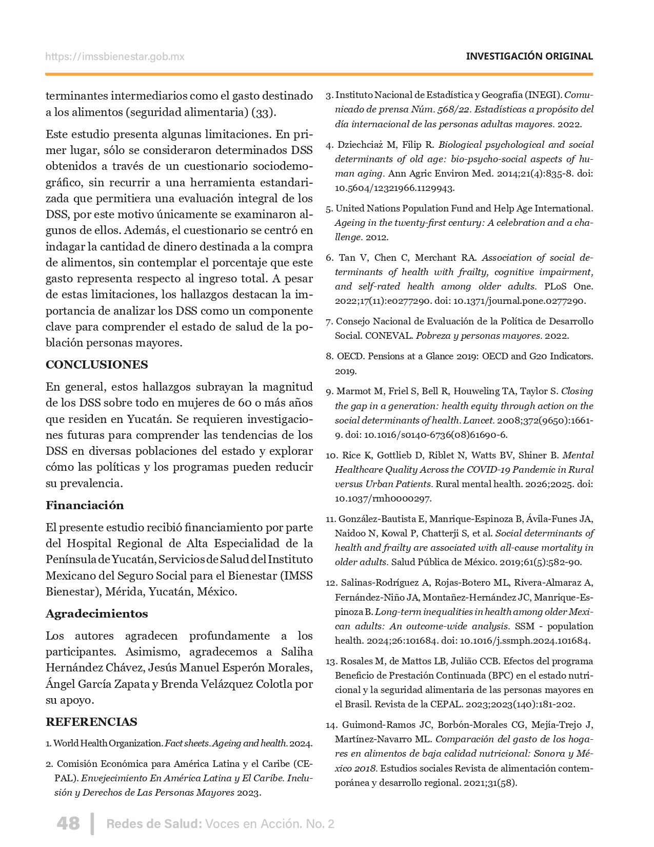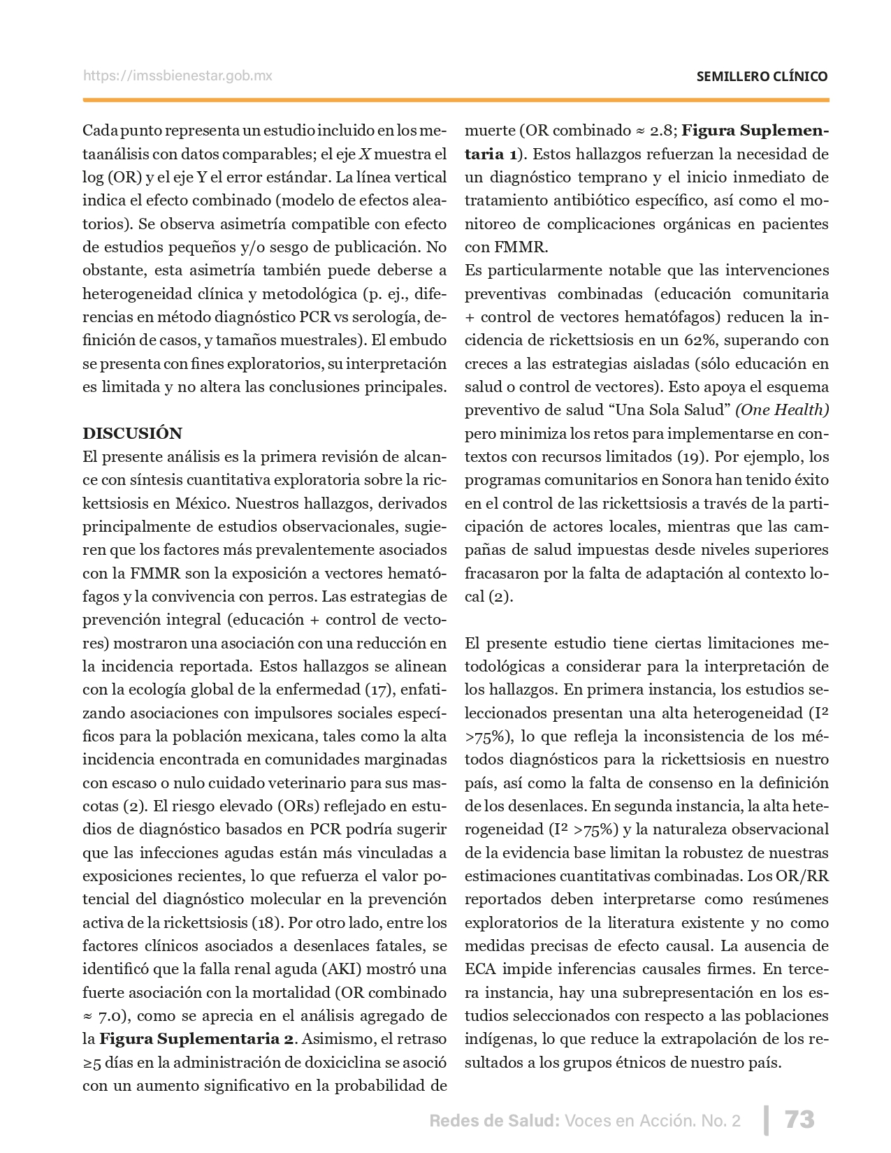 La revista considera investigaciones originales sobre sistemas de salud, con un énfasis en trabajos innovadores y de alto impacto clínico, científico y político. Su enfoque integra una diversidad de perspectivas, promoviendo el análisis crítico y reflexivo de los desafíos contemporáneos en los modelos de atención. Con una clara vocación social, la revista busca ser un referente en la difusión de conocimientos que contribuyan al fortalecimiento de sistemas de salud públicos, universales y equitativos, orientados al bienestar colectivo y la justicia sanitaria. Cada número de la revista está compuesto por diversas secciones que reflejan el carácter plural e interdisciplinario de Redes de Salud: Voces en Acción, entre ellas se encuentran: Editorial institucional; Voces desde el territorio, dedicada a entrevistas con actores comunitarios; Salud en contexto, con experiencias institucionales y análisis operativos; Perspectivas y metodologías, donde se exploran enfoques teóricos y técnicos innovadores; Semillero clínico y Reporte de casos, que visibilizan contribuciones formativas; e Investigación original, con artículos científicos que aportan al debate en salud pública y bienestar social. La revista constituye un órgano oficial de difusión científica del IMSS Bienestar. Opera como una publicación periódica con revisión por pares (doble ciego).