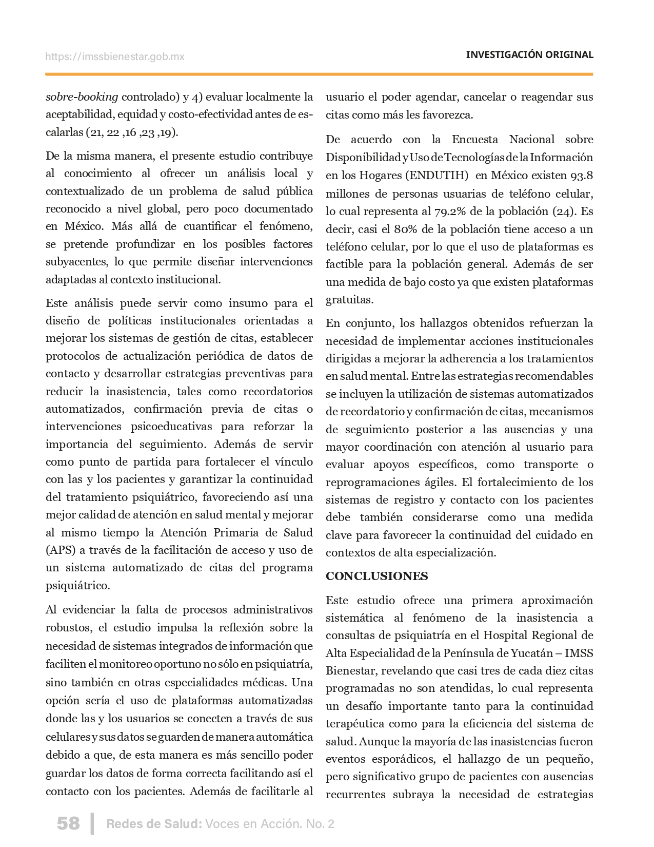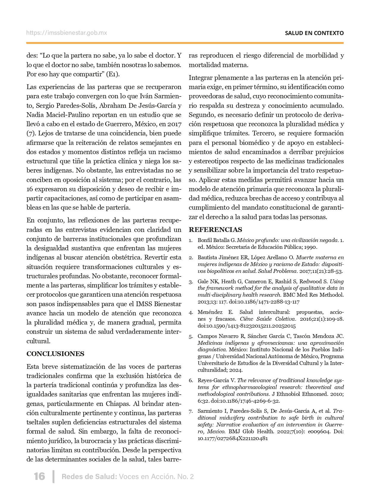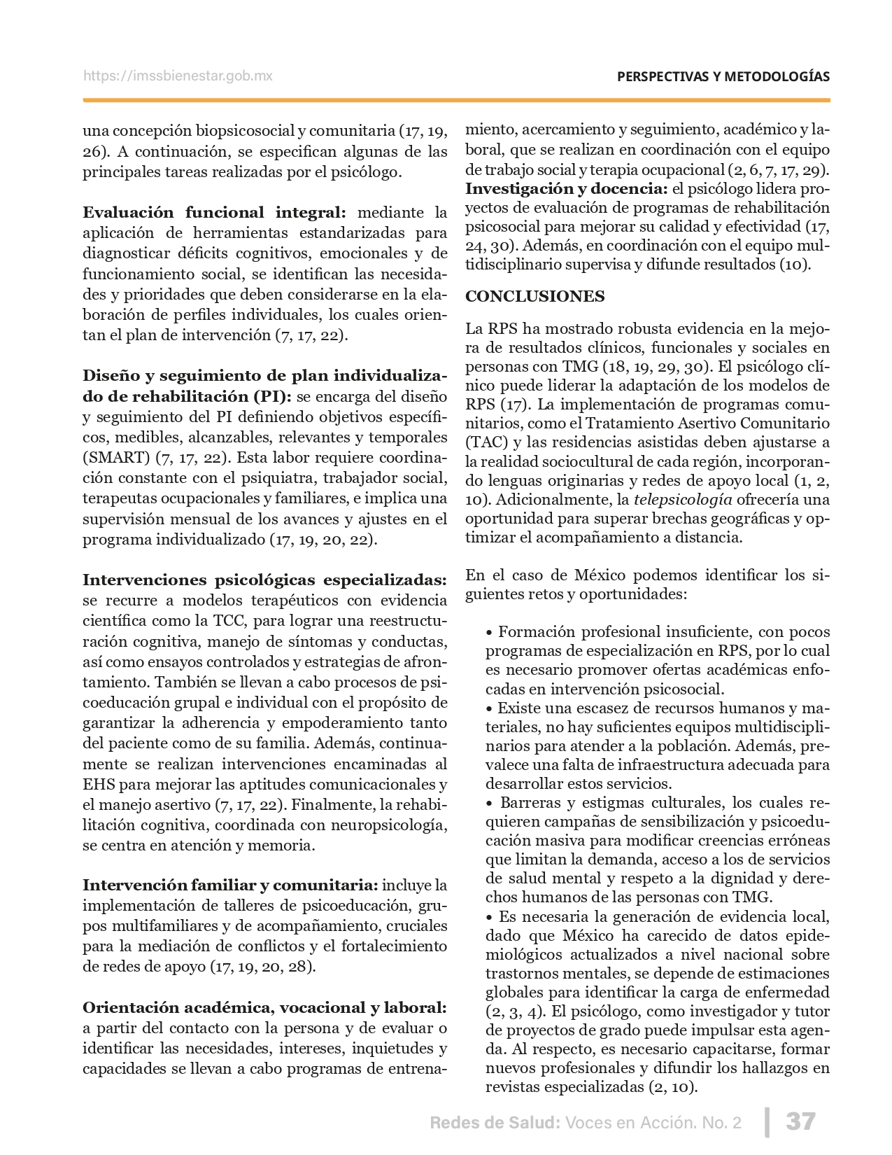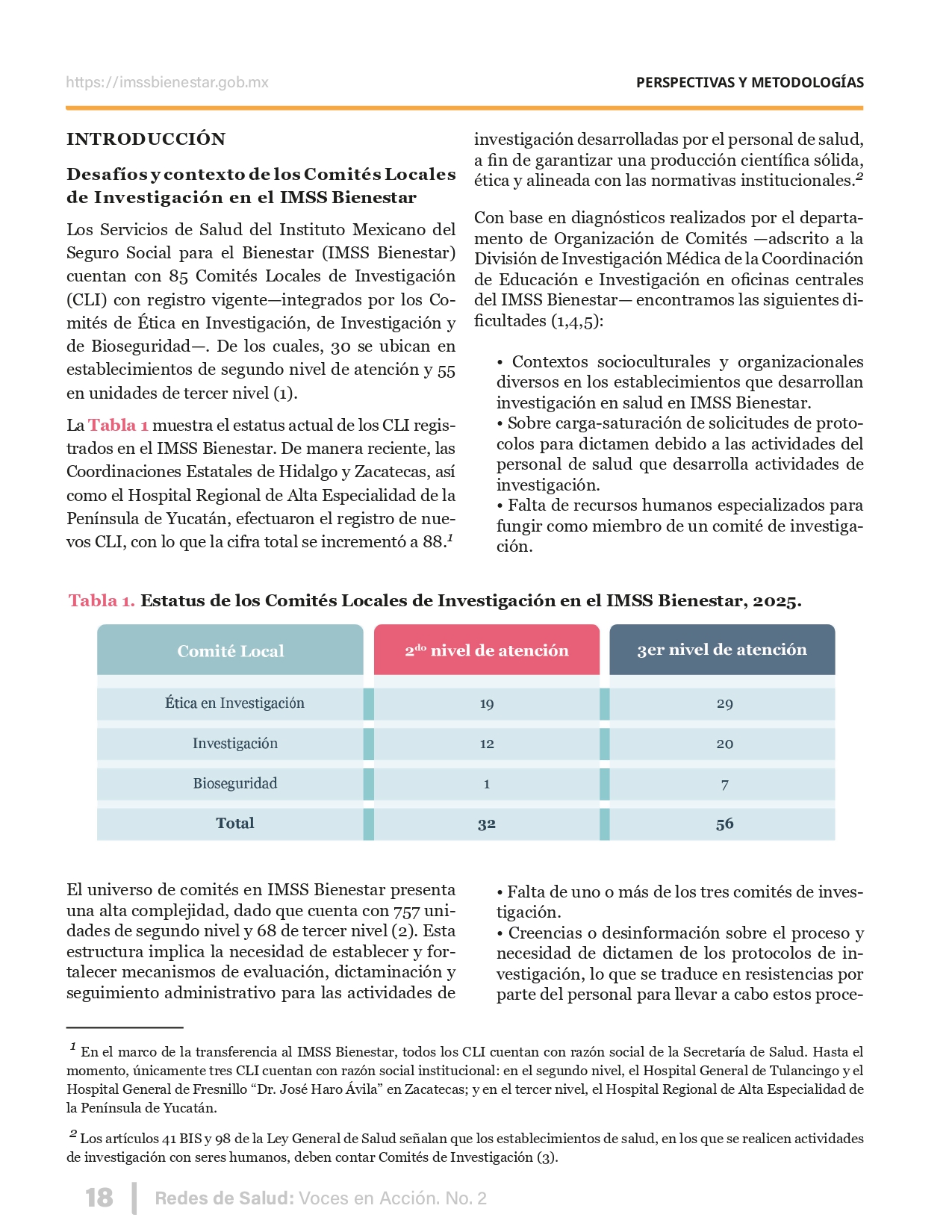 La revista considera investigaciones originales sobre sistemas de salud, con un énfasis en trabajos innovadores y de alto impacto clínico, científico y político. Su enfoque integra una diversidad de perspectivas, promoviendo el análisis crítico y reflexivo de los desafíos contemporáneos en los modelos de atención. Con una clara vocación social, la revista busca ser un referente en la difusión de conocimientos que contribuyan al fortalecimiento de sistemas de salud públicos, universales y equitativos, orientados al bienestar colectivo y la justicia sanitaria. Cada número de la revista está compuesto por diversas secciones que reflejan el carácter plural e interdisciplinario de Redes de Salud: Voces en Acción, entre ellas se encuentran: Editorial institucional; Voces desde el territorio, dedicada a entrevistas con actores comunitarios; Salud en contexto, con experiencias institucionales y análisis operativos; Perspectivas y metodologías, donde se exploran enfoques teóricos y técnicos innovadores; Semillero clínico y Reporte de casos, que visibilizan contribuciones formativas; e Investigación original, con artículos científicos que aportan al debate en salud pública y bienestar social. La revista constituye un órgano oficial de difusión científica del IMSS Bienestar. Opera como una publicación periódica con revisión por pares (doble ciego).